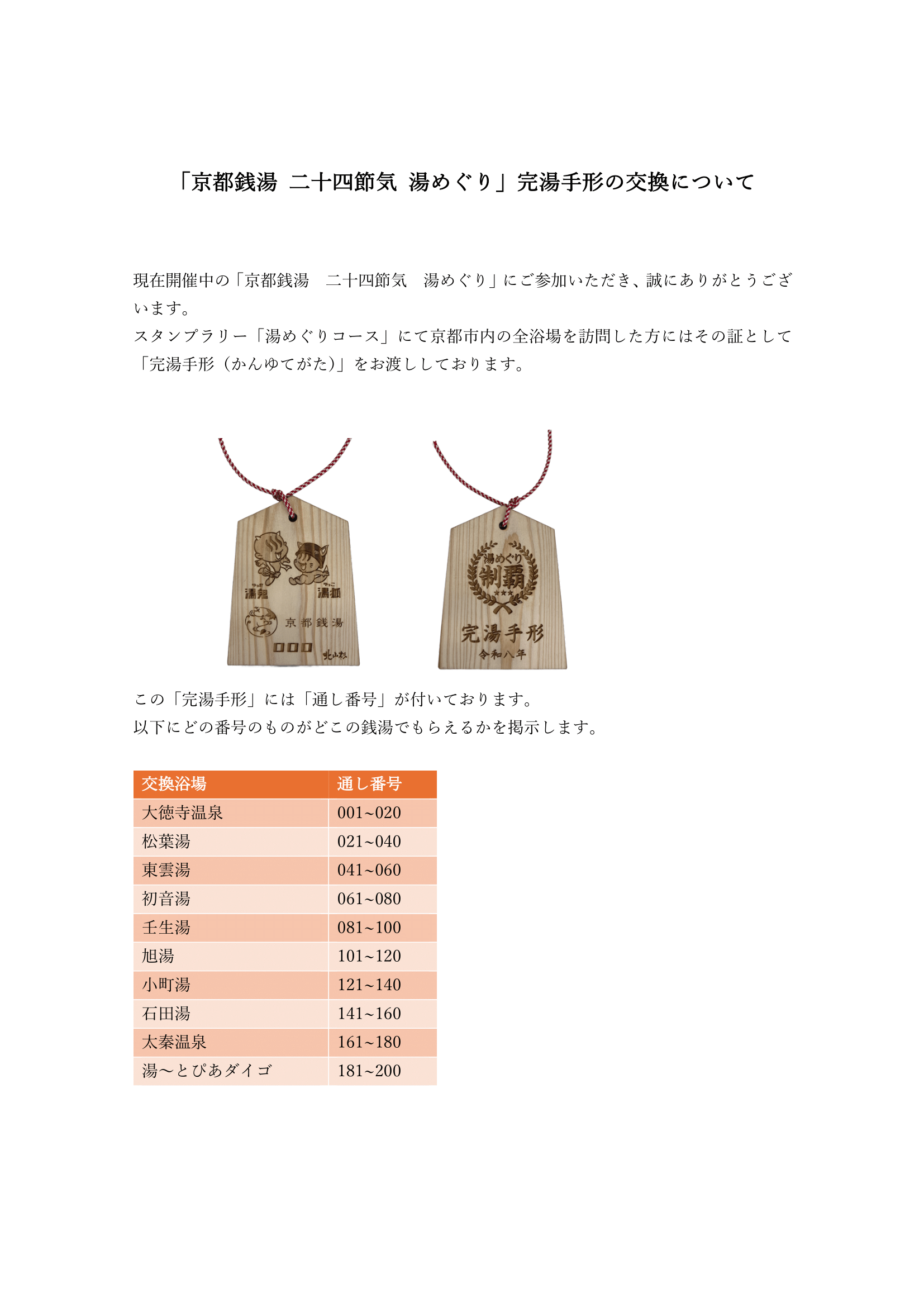 「京都銭湯 二十四節気 湯めぐり」完湯手形の交換について(2025/12/18記事差し替え)