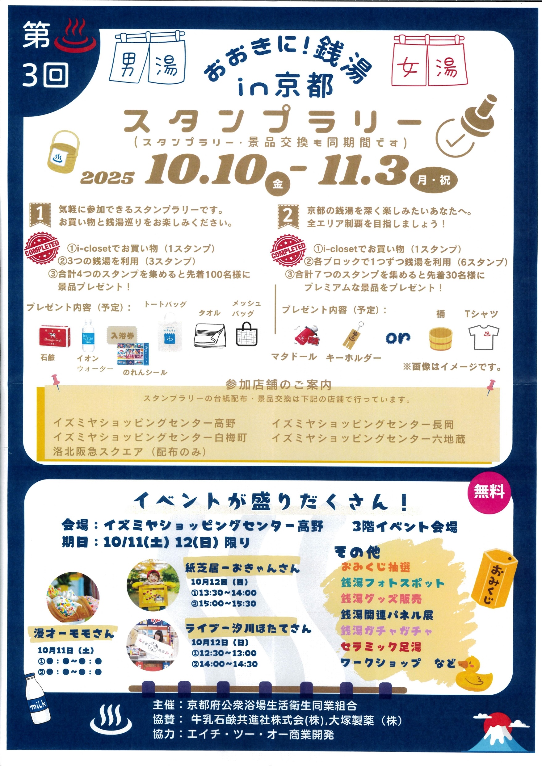 10月10日より開催!第3回おおきに!銭湯in京都 スタンプラリー!