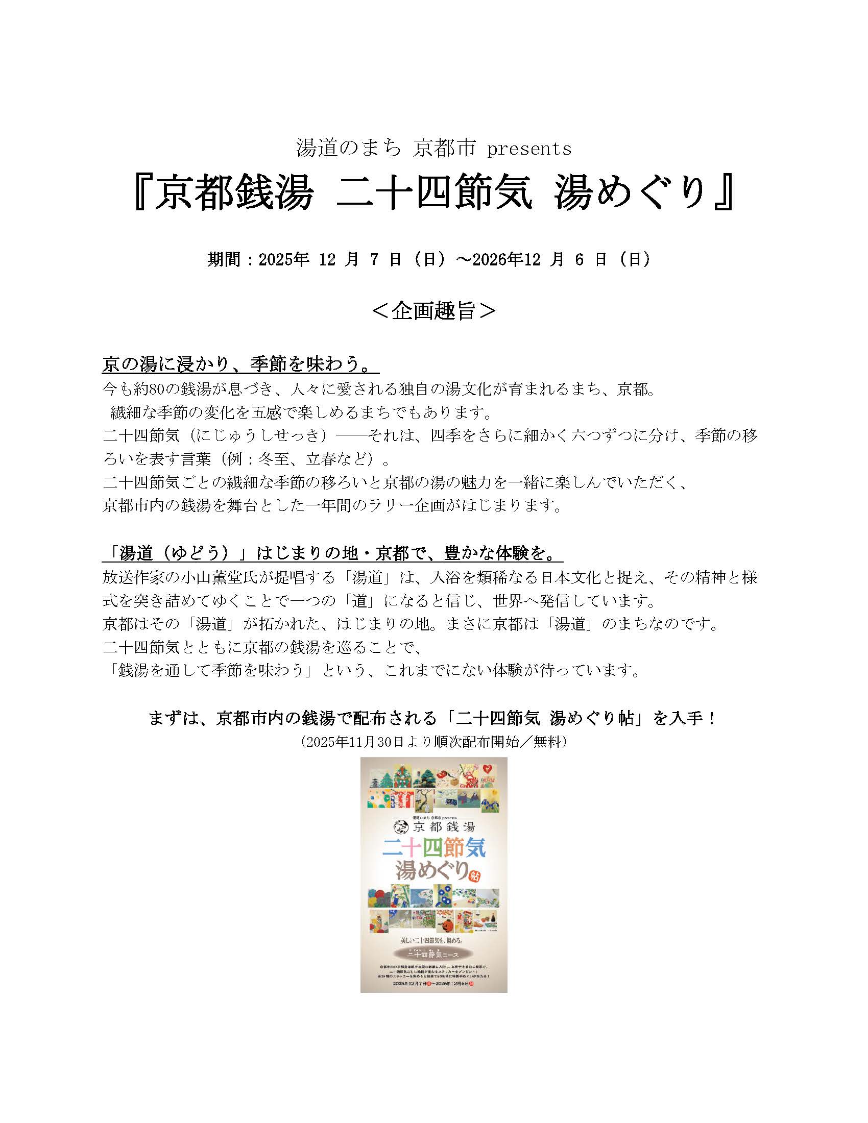 12月7日より開催『京都銭湯 二十四節気 湯めぐり』