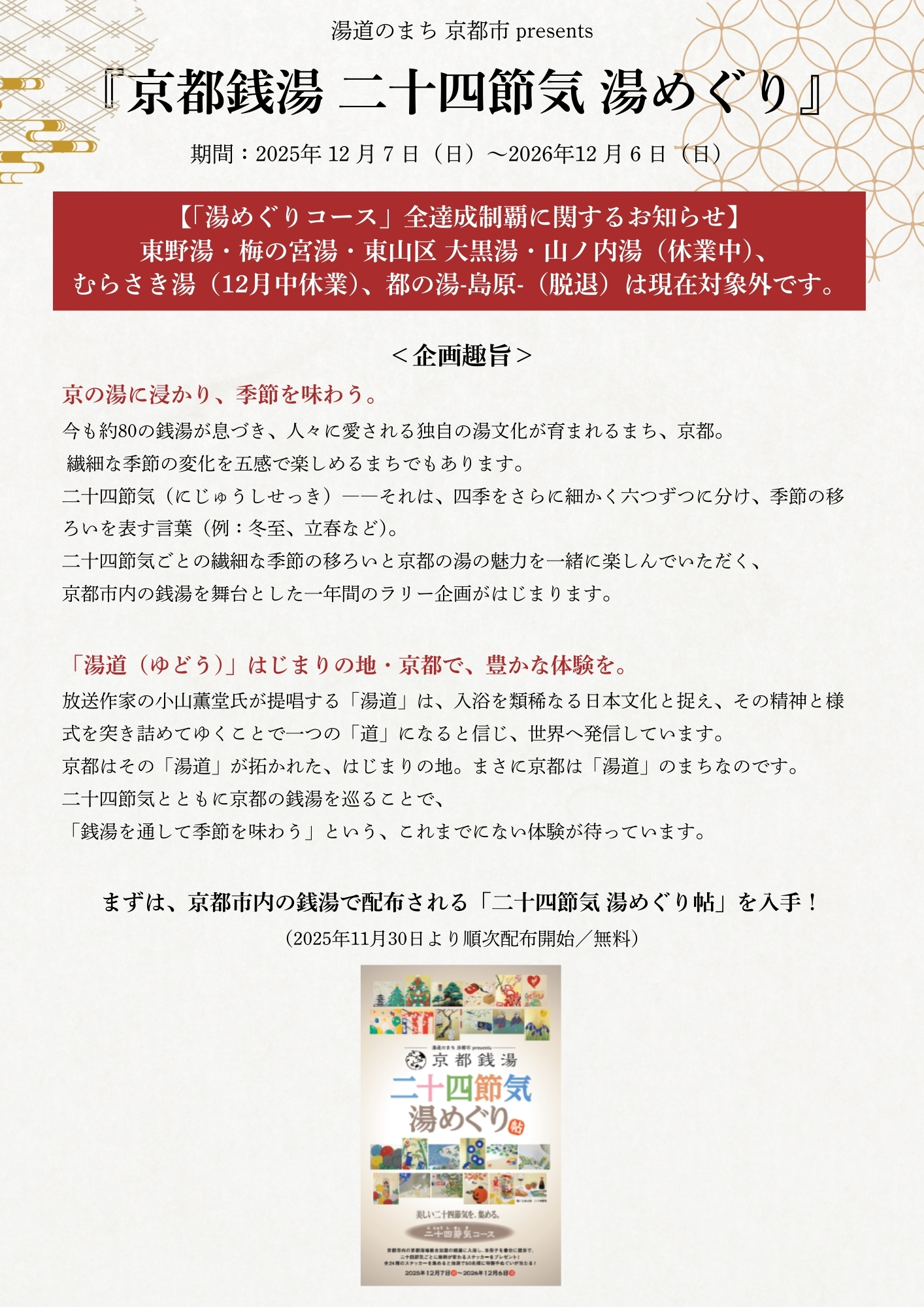 12月7日より開催『京都銭湯 二十四節気 湯めぐり』